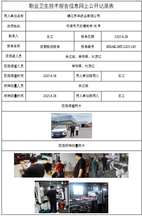 職業(yè)衛(wèi)生技術(shù)報告信息網(wǎng)上公開記錄表用人單位名稱日豐企業(yè)(鎮(zhèn)江)有限公司注冊地址江··· -